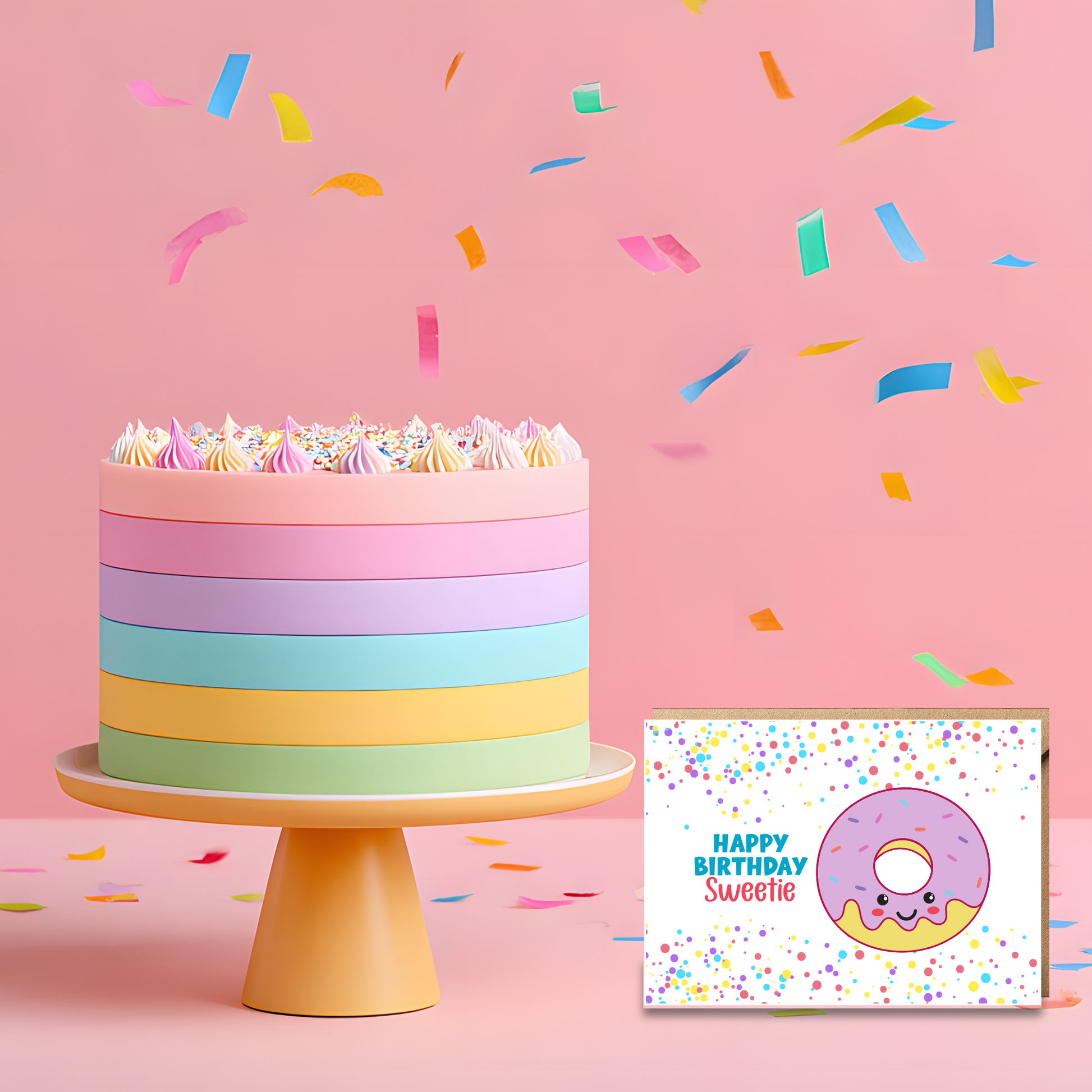 Kawaii Donut Delights – Set of 4 Printable A6 Birthday Cards